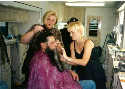 In 1997 I took a leave of absence from my schooling and worked as Assistant Hair on my first film in the Hair Department. It was a Universal Television movie called “Not in this Town” starring Kathy Baker, Ed Begley Jr. and Adam Arkin.