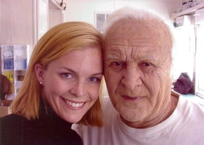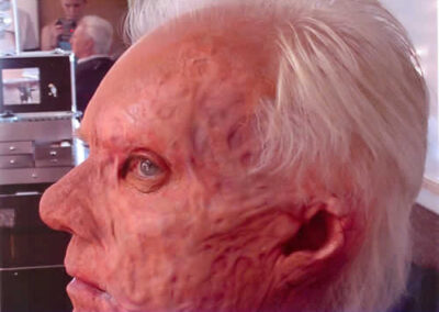 During Touched By an Angel’s three month hiatus I worked on a variety of other projects over the years. One of these projects was “Firestarter Rekindled” with Malcolm McDowell. I was hired as an assistant special FX makeup artist and had the privilege to work under Bari and Tom Burman. They are known for their work on Star Trek, The Tracy Ullman Show, Grey’s Anatomy and many others. They have won 5 emmy awards and been nominated for sixteen others. Needless to say, I was extremely excited to learn from them.